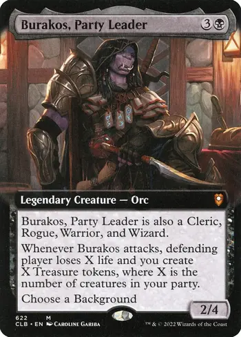 Nalia de’Arnise leads this Orzhov Party deck built around assembling creature roles. Completing a full party unlocks card advantage and combat buffs, while Changelings ensure consistency. Aristocrats synergies and recursion add resilience. The deck wins through sustained combat pressure.